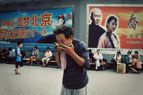 Photo: Eating watermelon outside the Beijing train station, by Christopher Cherry 2010年7月31日 Eating watermelon outside the Beijing train station, by Christopher Cherry 所在分类:Main Photo