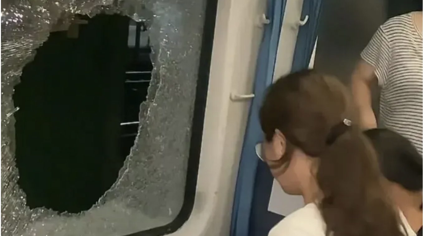 7月2日,金华市K1373次旅客列车因事故在轨道上滞留约3小时,空调和通风系统全部失效。一名黑衣小伙不过乘务员阻拦,用安全锤砸碎车窗,这才为车厢带来短暂的空气流通。而后却被警察带走。