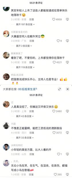 评论区却是一片讽刺声:“把国衰说成快乐开心,主持人也是专业!”、“人家是真没招了,你搁这环保又快乐”、“正能量满满,连低工资都能包装成清新脱俗”。