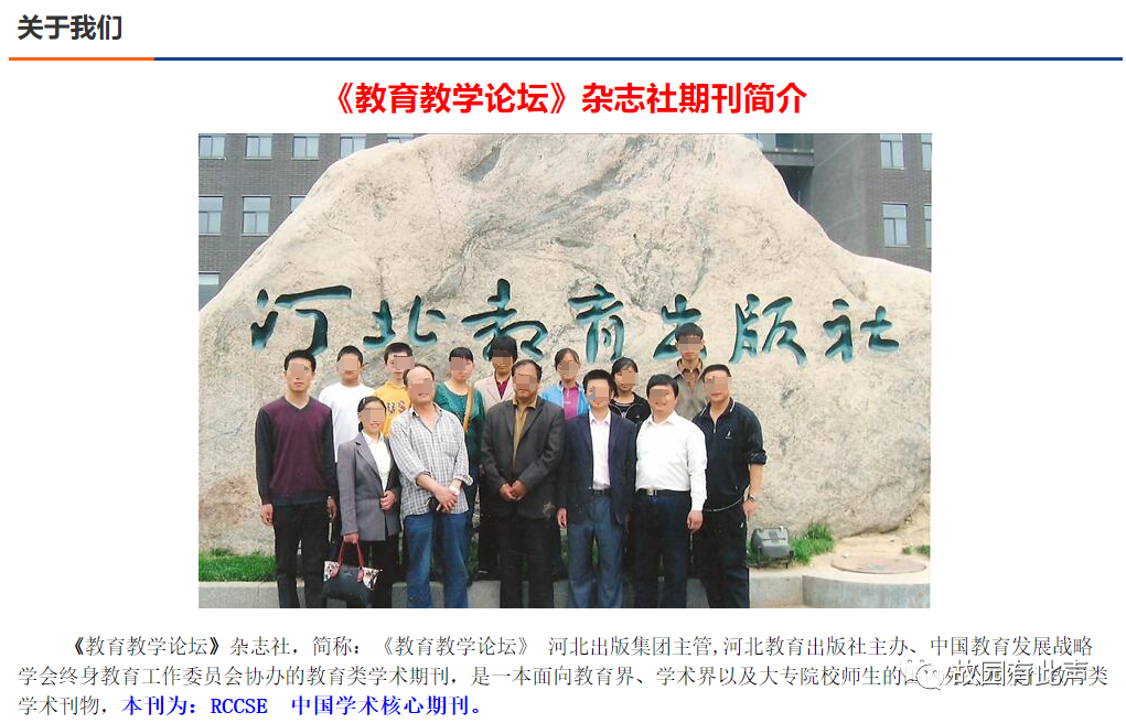2023年11月7日 (二) 19:22 学术垃圾6.png文件 591 KB Xinchen 作为刊载上述论文的《教育教学论坛》杂志,其官网介绍显示,该杂志为河北出版集团主管,河北教育出版社主办、中国教育发展战略学会终身教育工作委员会协办的教育类学术期刊,为中国学术核心期刊。